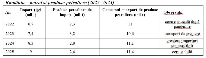 - importurile de produse petroliere au crescut de la aproximativ 3,1 milioane barili pe zi în 2022 la aproximativ 3,5 milioane barili pe zi în 2025